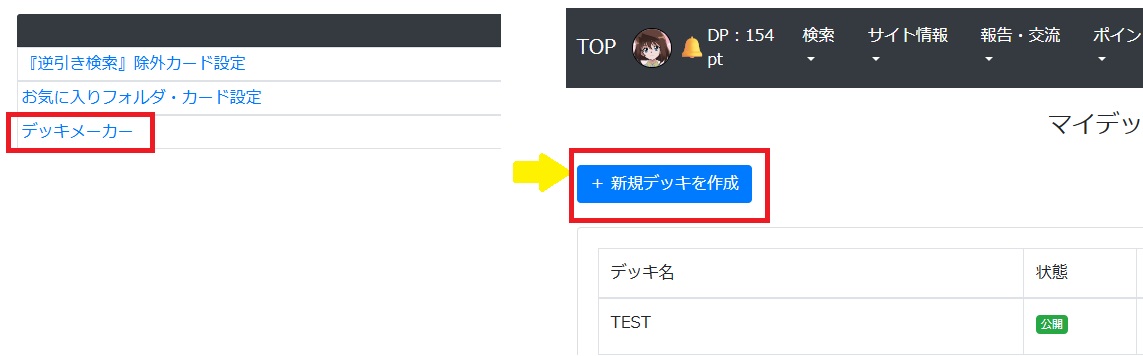 ユーザーページからYPSデッキメーカーをご利用いただけるようになりました。