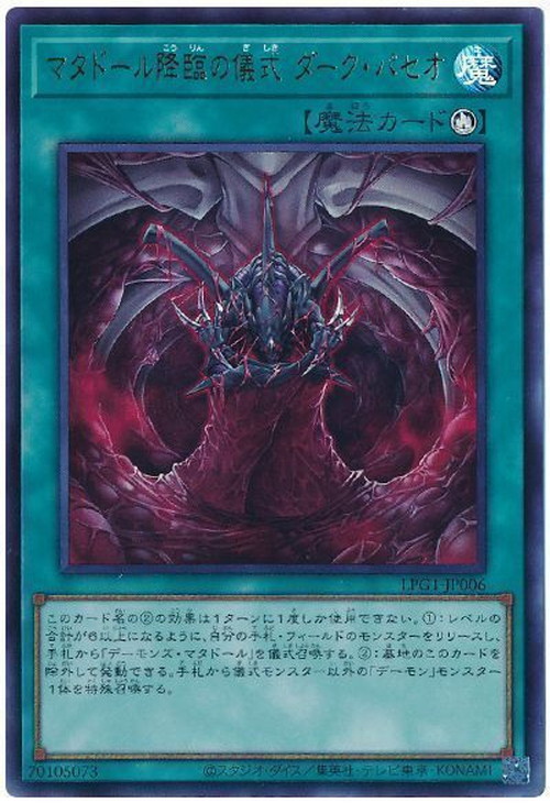 ①:レベルの合計が6以上になるように、自分の手札・フィールドのモンスターをリリースし、手札から「デーモンズ・マタドール」を儀式召喚する。