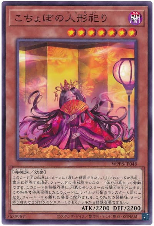 ①:自分フィールドの表側表示モンスター1体を対象として発動できる。その自分のモンスターと元々のカード名が同じモンスター2体を、自分の手札・デッキ・墓地から装備魔法カード扱いで対象のモンスターに装備する。そのモンスターはこの効果でモンスターを2体とも装備している限り、攻撃できず、戦闘では破壊されない。このカードの発動後、ターン終了時まで自分は対象のモンスターと元々の種族が同じモンスターしか特殊召喚できない。