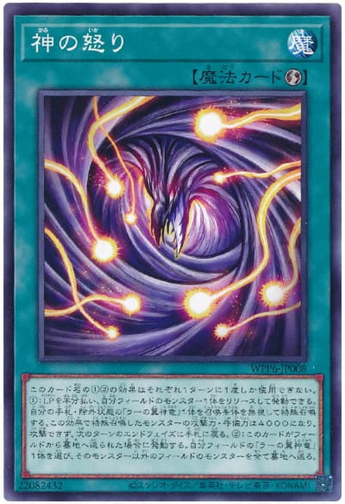 ②:自分フィールドに「王家の神殿」が存在する場合、墓地のこのカードを除外して発動できる。デッキから「神の怒り」1枚を手札に加える。