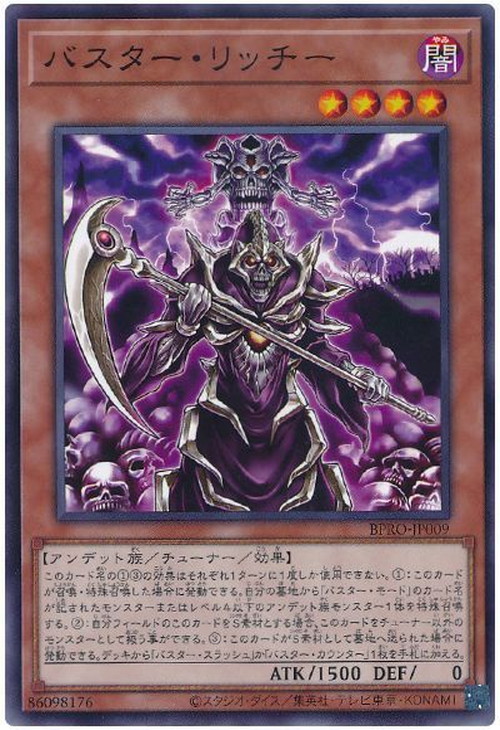 ①:このカードが召喚・特殊召喚した場合に発動できる。自分の墓地から「バスター・モード」のカード名が記されたモンスターまたはレベル4以下のアンデット族モンスター1体を特殊召喚する。