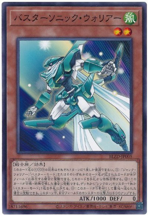 ①:「ジャンク・ウォリアー」「バスター・モード」またはそのいずれかのカード名が記されたカードが自分フィールドに存在する場合に発動できる。このカードを手札から特殊召喚する。