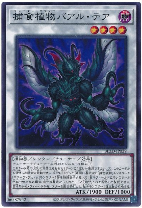 ①:このカードが手札に存在し、自分フィールドに「捕食植物」モンスターか「スターヴ・ヴェノム」モンスターが存在する場合に発動できる。このカードを特殊召喚する。その後、デッキから「融合」1枚を手札に加える事ができる。
