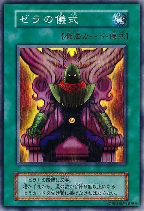 儀式「ゼラ」の降臨に必要。場か手札から、星の数が合計8個以上になるようカードを生け贄に捧げなければならない。