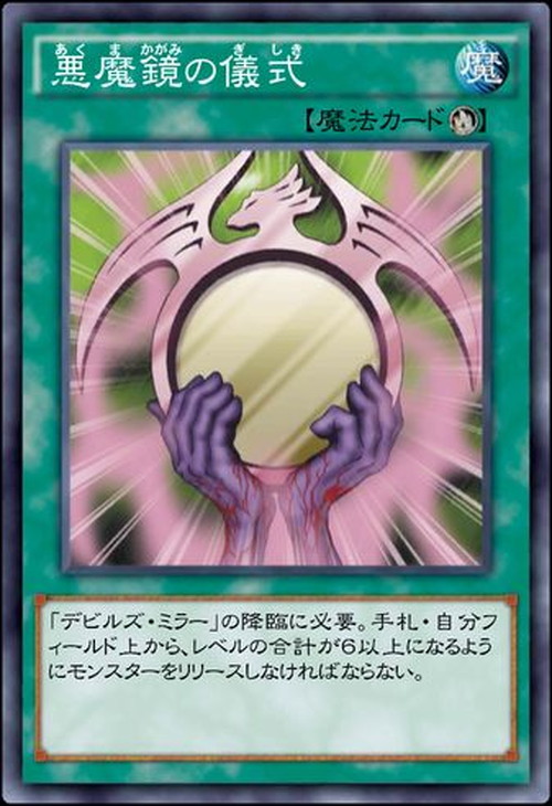 儀式「デビルズ・ミラー」の降臨に必要。場か手札から、星の数が合計6個以上になるようカードを生け贄に捧げなければならない。