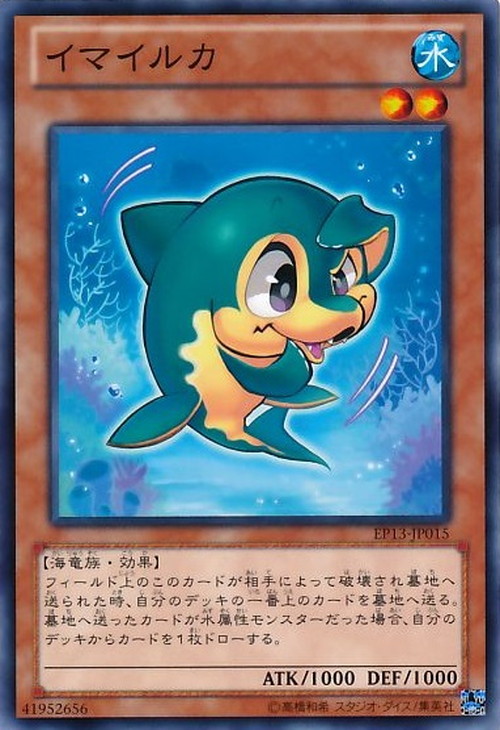 フィールド上のこのカードが相手によって破壊され墓地へ送られた時、自分のデッキの一番上のカードを墓地へ送る。墓地へ送ったカードが水属性モンスターだった場合、自分のデッキからカードを1枚ドローする。