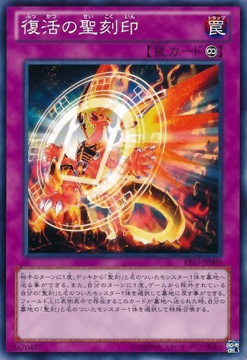 永続相手のターンに1度、デッキから「聖刻」と名のついたモンスター1体を墓地へ送る事ができる。 また、自分のターンに1度、ゲームから除外されている自分の「聖刻」と名のついたモンスター1体を選択して墓地に戻す事ができる。 フィールド上に表側表示で存在するこのカードが墓地へ送られた時、自分の墓地の「聖刻」と名のついたモンスター1体を選択して特殊召喚する。