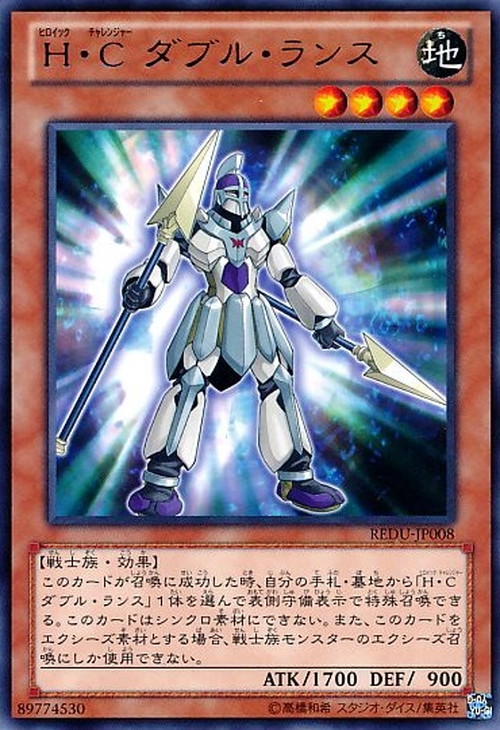 このカードが召喚に成功した時、自分の手札・墓地から「H・C ダブル・ランス」1体を選んで表側守備表示で特殊召喚できる。このカードはシンクロ素材にできない。また、このカードをエクシーズ素材とする場合、戦士族モンスターのエクシーズ召喚にしか使用できない。