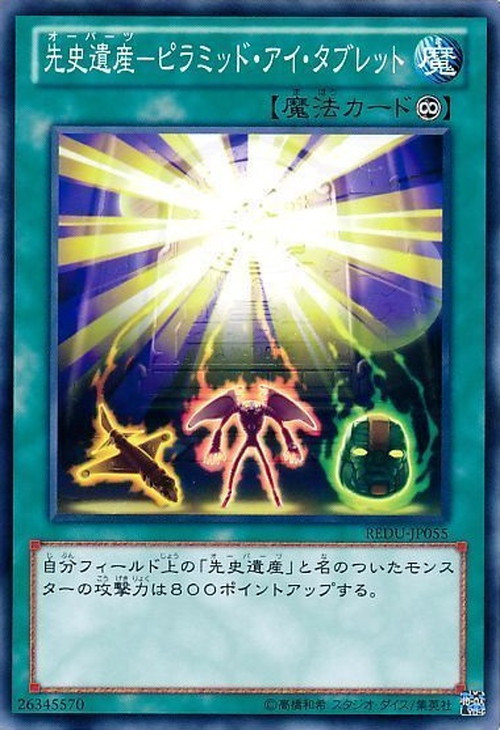 永続自分フィールド上の「先史遺産」と名のついたモンスターの攻撃力は800ポイントアップする。