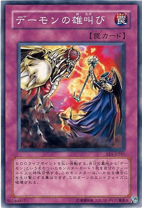 500ライフポイントを払い発動する。自分の墓地から「デーモン」という名のついたモンスターカード1枚を自分のフィールド上に特殊召喚する。このモンスターは、いかなる場合にも生け贄にする事はできず、このターンのエンドフェイズに破壊される。
