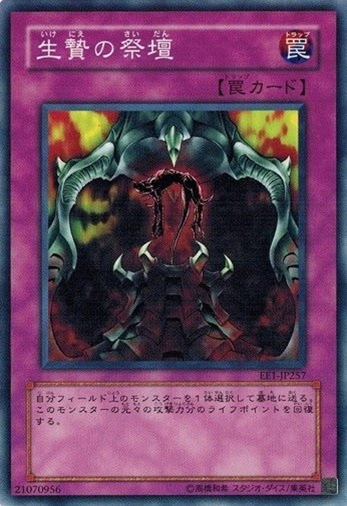 自分フィールド上のモンスターを1体選択して墓地に送る。このモンスターの元々の攻撃力分のライフポイントを回復する。