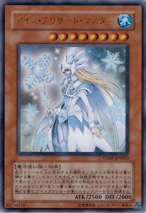 このカードは自分フィールドの水属性モンスター2体をリリースし、手札から特殊召喚できる。1ターンに1度、フィールド上に表側表示で存在するモンスター1体を選択し、アイスカウンターを1つ置く事ができる。また、このカードをリリースする事で、アイスカウンターが乗ったモンスターを全て破壊する。